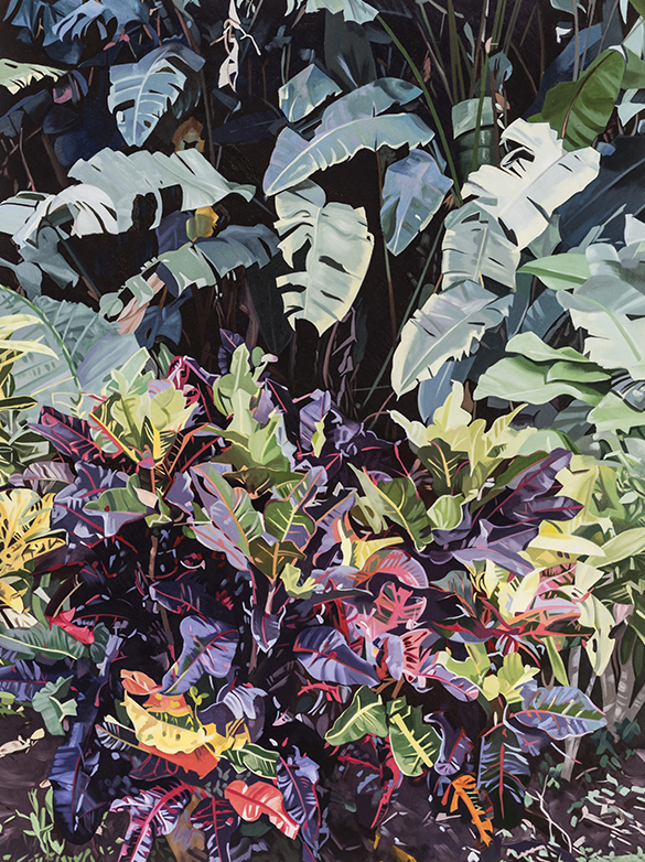 Barry Dabb is an artist, art historian and curator who paints from his home studio in Tauranga. Since the late 1990’s he has been documenting domestic gardens throughout the South Pacific, including locations in Rarotonga, Samoa, Niue and Vanuatu. Each of these lush settings contain species that are often not indigenous to their island habitats. They reflect a subtle form of infiltration both of the flora and the culture that has occurred over many years.