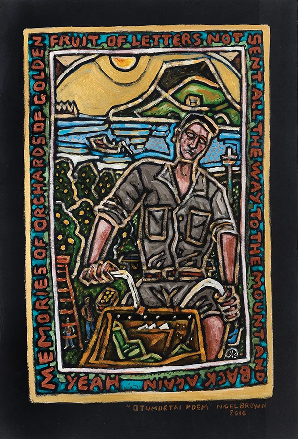 Brown has exhibited throughout New Zealand and internationally. He has received numerous awards and is represented in collections of most major public institutions throughout the country. Otumoetai Poem was the first work commissioned from an artist by the Chrysalis Collection.